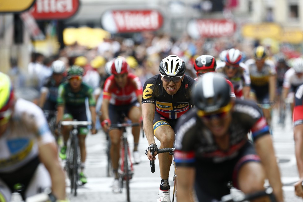 Katjusja-rytteren prøvde å kjøre seg opp, men var i realiteten ute av kampen om etappeseier. Dermed var det opp til Boasson Hagen å forsvare Norges farger.