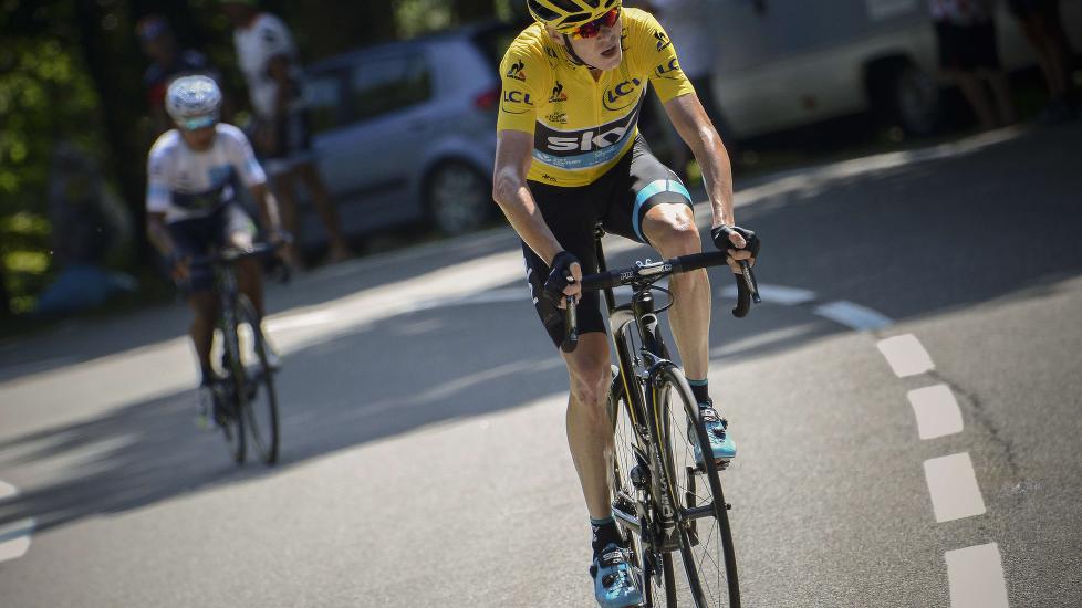MÅTTE SLIPPE: Nairo Quintana klarte lenge å følge Chris Froome, men til slutt måtte også han slippe. Foto: JEFF PACHOUD / AFP