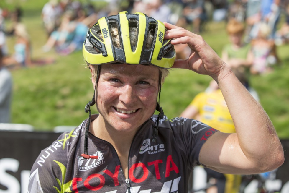 NORGESMESTER: Hildegunn Hovdenak ble Norgesmester på fellesstart landevei i 2012, i Bergen. Her sammen med vinneren i herreklassen, Edvald Boasson Hagen. Foto: Marit Hommedal / NTB scanpix