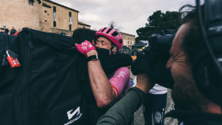 Gråtende, utslitt og dekket av støv dedikerte Wout van Aert (Team Visma | Lease a Bike) Paris-Roubaix-seieren til sin avdøde lagkamerat Michael Goolaerts. Det tok åtte år. Det var verdt ventetiden. I det berømte velodromet i Roubaix overmannet han verdensmester Tadej Pogačar (UAE Team Emirates) i en tomannsspurt – et løp der begge to hadde kjempet seg tilbake til etter mekanisk motgang.