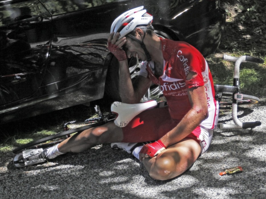 På vei ned fra fredagens første 1.kategori, Col du Grand Cucheron, veltet den