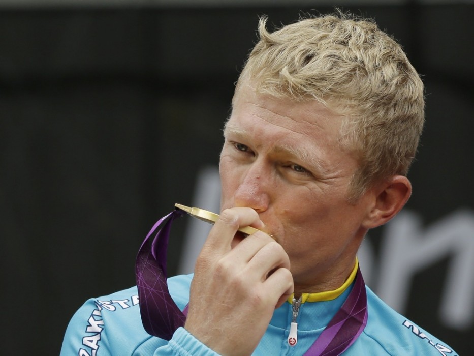 gullvineren Alexander Vinokourov (Kasakhstan) og sølvmedaljøren Rigoberto