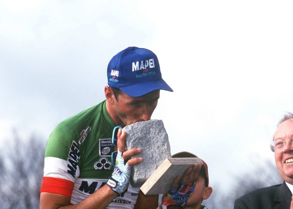 TREDOBBELT: Mapei-laget herjet i 99-utgaven av Paris-Roubaix. Tafi vant foran Wilfried Peeters og Tom Steels. Foto: Tim De Waele/Getty Images