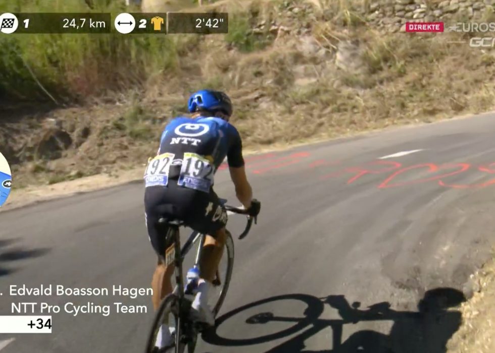 SLUTTKJØRT: Hit kom Edvald Boasson Hagen i dagens utbrudd, men ikke lenger. FOTO: Skjermdump fra Eurosport Norge
