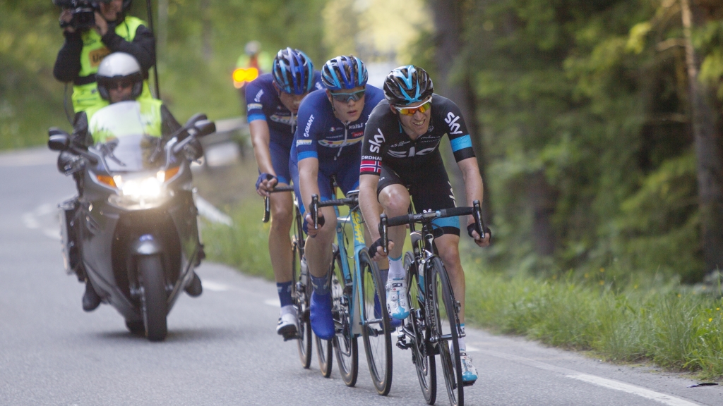 Lars Petter Nordhaug fikk det derimot til, og dro med seg Truls Engen Korsæth opp. Det sprakk litt opp siste gang opp VIP-vegen, men nede på flaten var det de tre mot en gruppe bestående av Vegard Breen, Sven Erik Bystrøm, Edvald Boasson Hagen og gratispassasjerene Anders Skaarseth og Odd Christian Eiking.