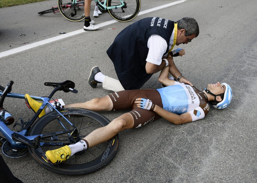 STYGG VELT: Axel Domont skadet seg stygt på fjerde etappe av Tour de France. Uhellet preger ham fremdeles. Foto: Jeff Pachoud - Pool/Getty Images