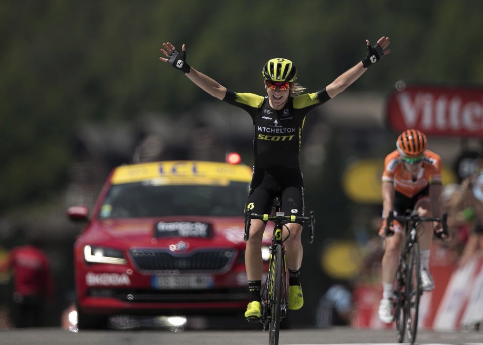 35-åringens andre seier i rittet kom etter at hun jaktet Anna van der Breggen (Boels-Dolmans) ned fra den avgjørende stigningen Col de la Colombiere og innhentet sin nederlandske rival like før målstreken i Le Grand-Bornand, hvor herrenes ritt skal ha målgang senere på dagen.