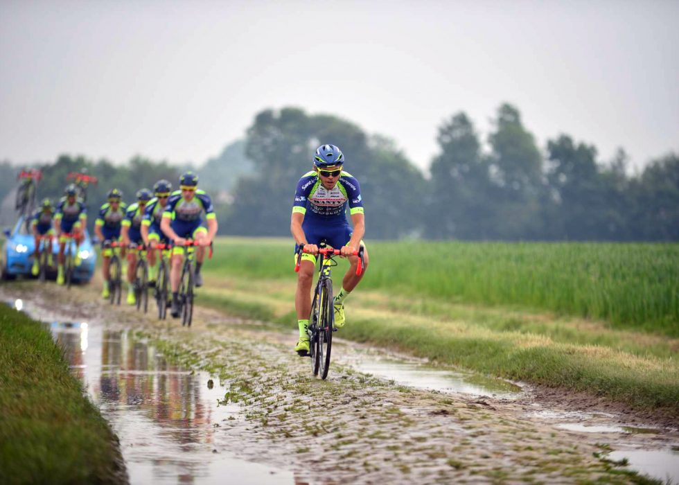 REKOGNOSERING: Tirsdag sykelt Odd Christian Eiking og Wanty-Groupe Gobert over brosteinen som er med i årets Tour de France. Foto: Wanty-Groupe Gobert