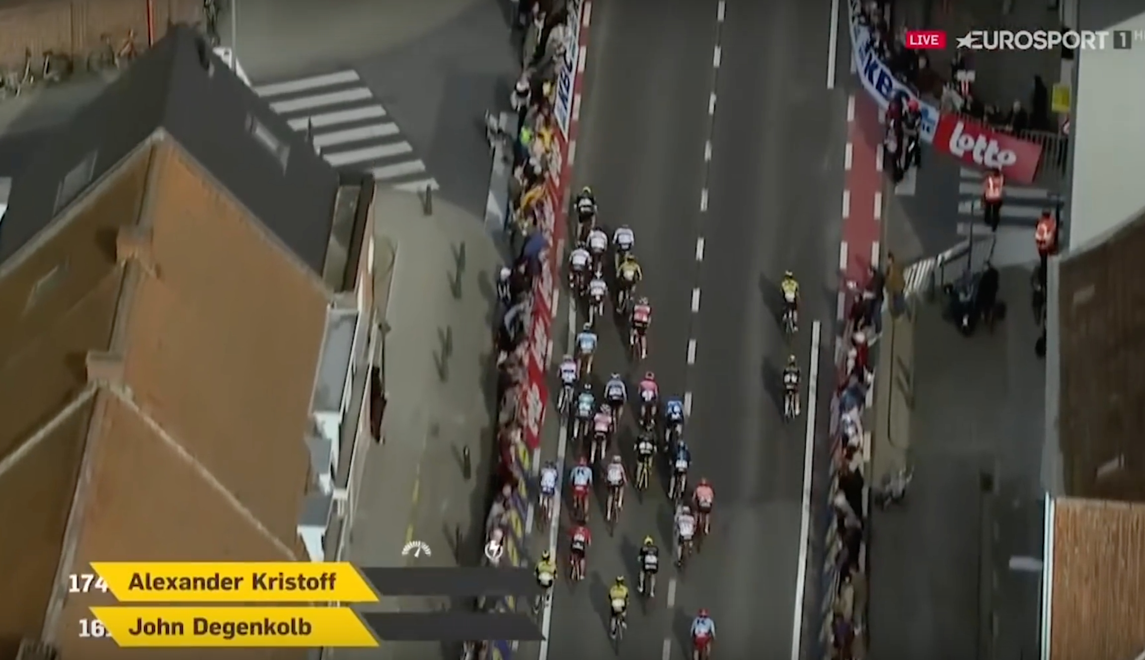 Omtrent samtidig utløste Kristoff sin voldsomme avslutning. Ingen andre ryttere var i nærheten av å svare på akselereringen og Gaviria satte på bremsen, noe som låste den farligste spurteren i feltet fra å foreta seg noe som helst.
