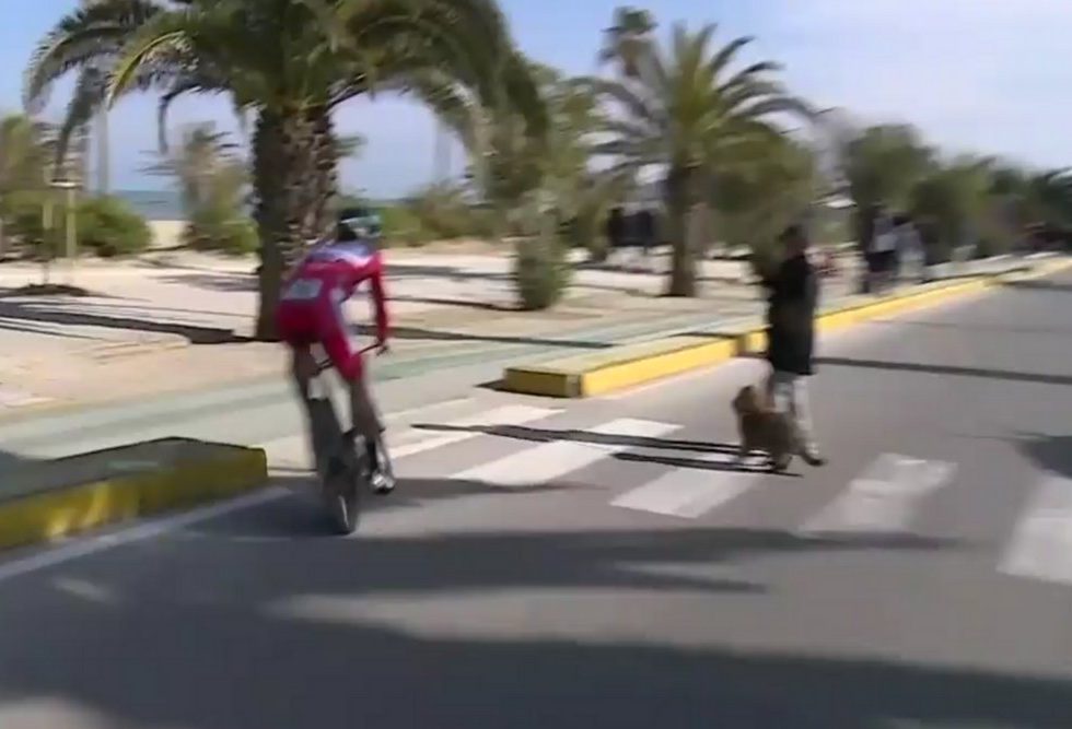 Den slovakiske verdensmesteren er kjent for å være en kunstner på sykkelen, og manøvrerte seg unna ved å kjøre av veien og inn på fortauet. Der sto det flere tilskuere, men Sagan unngikk uhell før han kjørte på veien igjen.