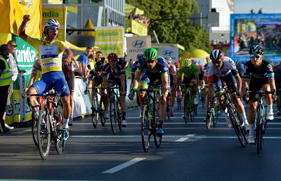 Fredag tok colombianeren sin femte seier i 2016. På den fjerde etappen av Polen rundt hang Gaviria med da spurtere som Caleb Ewan og Elia Viviani måtte slippe hovdfeltet. Ved målgang i Rzeszów spurtslo Etixx-rytteren Luka Mezgec og tok sin andre seier på tre dager.