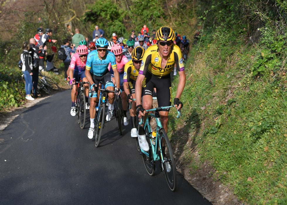 VIKTIG HJELPER: Primoz Roglic må klare seg uten Robert Gesink i Giro d'Italia. Her trekker nederlenderen på sloveneren i Tirreno-Adriatico der Roglic vant sammenlagt. Foto: Tim de Waele/Getty Images