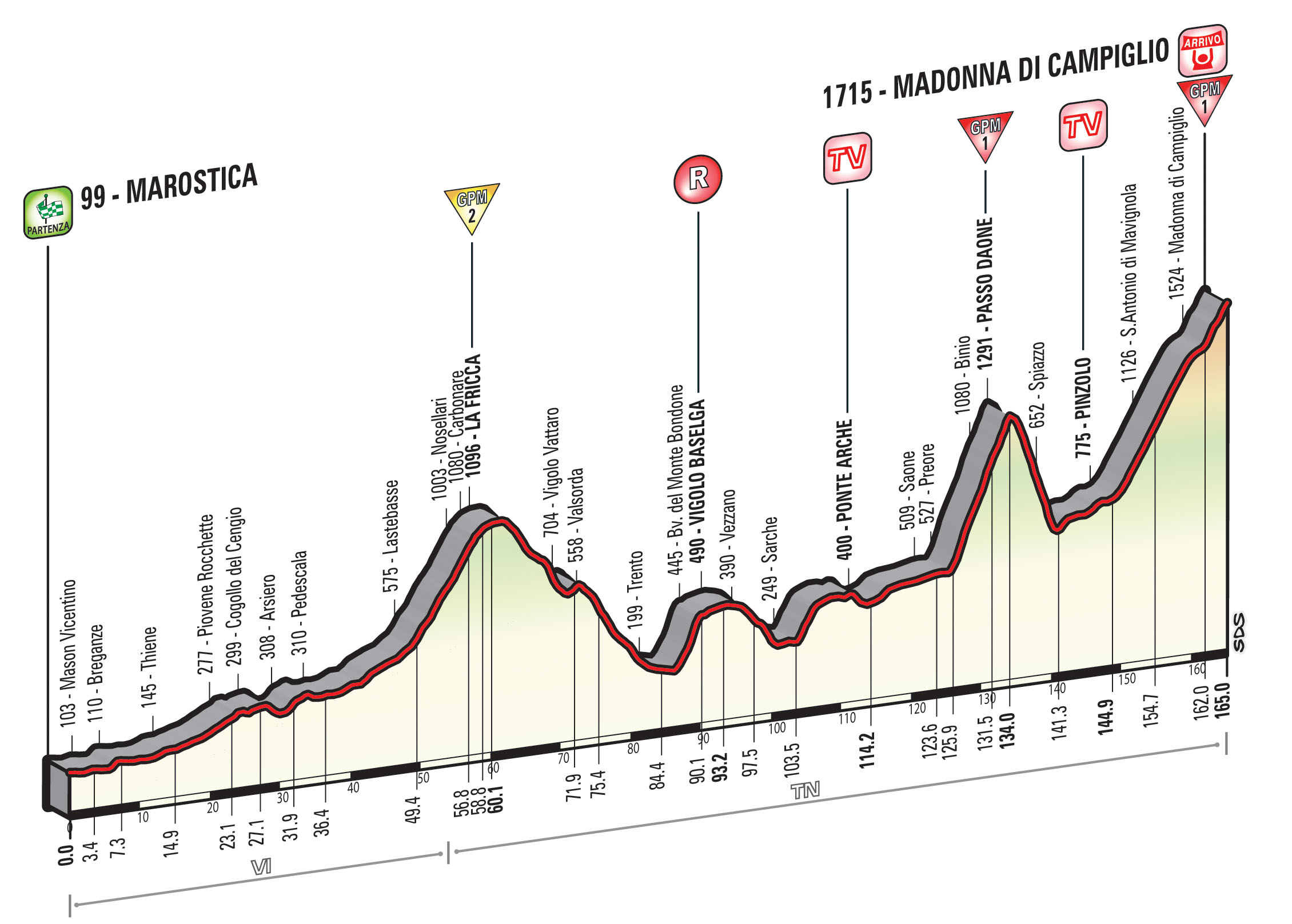 24.mai – Etappe 15: Marostica – Madonna di Campiglio (165 km)
