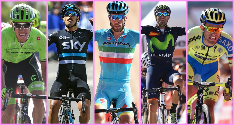 HVEM VINNER?: Uran, Landa, Nibali, Valverde, Majka: alle skal kjempe om rosa trøye. Foto: Tim de Waele (©TDWSport.com)