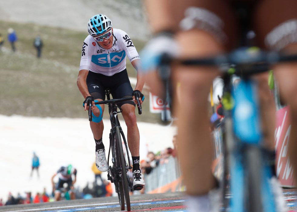 På den noe lettere fjellavslutningen til Montevergine di Mercogliano kom han også inn med favorittene, men på søndagens etappe til Gran Sasso d’Italia måtte han igjen slippe favorittene. De siste bratte kilometerne opp mot mål ble for tøffe. Vondt ble til verre da Wout Poels kom opp til kapteinen sin og satt fart i gruppa til Froome, bare for å så se at Froome måtte slippe inn på de siste par hundre meterne. 23. plass og 1.07 bak etappevinner Simon Yates ble fasit, noe som sendte han utenfor topp ti i sammendraget. Opp til sammenlagtleder Yates er det nå to minutter og 27 sekunder.