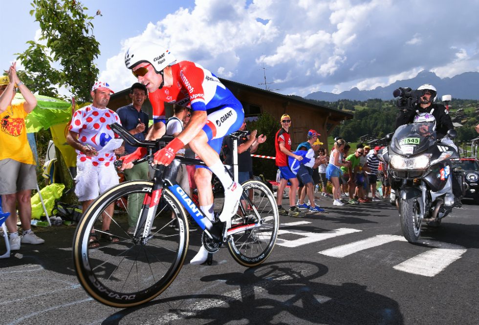 (procycling.no): Da 176 ryttere hadde passert målstreken i Megève satt Tom Dumoulin fremdeles i «hot seat». Bak nederlenderen var resultatlisten spekket av klatrere i verdensklasse. Ute i løypen var det kun én rytter igjen, som kunne hindre Dumoulin i å ta en stor skalp.