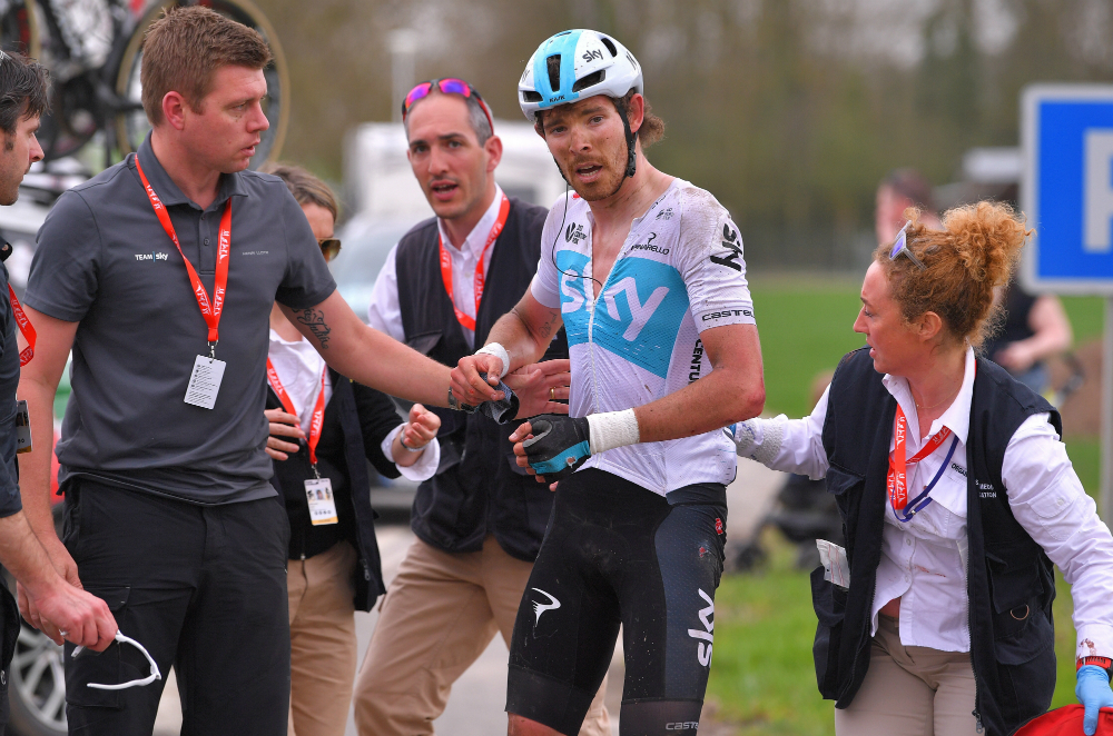 NED MED KRISTOFF: Mer uflaks for Team Sky da Luke Rowe gikk ned i samme velt som Alexander Kristoff. FOTO: Tim de Waele (TDWSport.com)