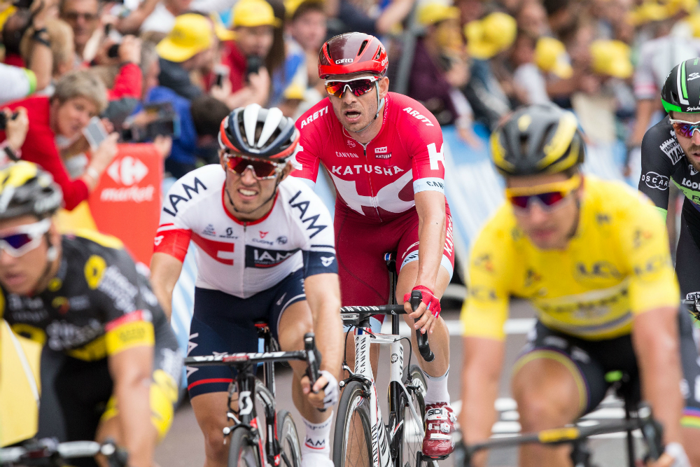 TETTE DUELLER: I fjor sommer fikk Sondre Holst Enger bryne seg mot Alexander Kristoff og de andre toppspurtere på den største scenen av dem alle. 2017 kommer til å bli spekket av dueller mellom de to nordmennene. Det er bare å glede seg! FOTO: Audun Braastad / NTB scanpix