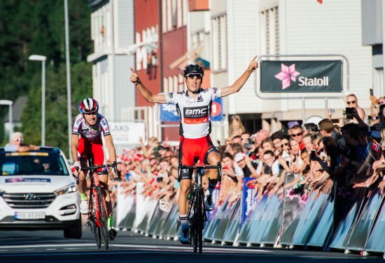 DRAMA I NARVIK: Silvan Dillier vant etappen, lagkompis Ben Hermans mistet sammenlagtseieren – og Rein Taaramäe overtok den. Dette skjedde på rittets siste dag i 2015. FOTO: AFP PHOTO/JONATHAN NACKSTRAND