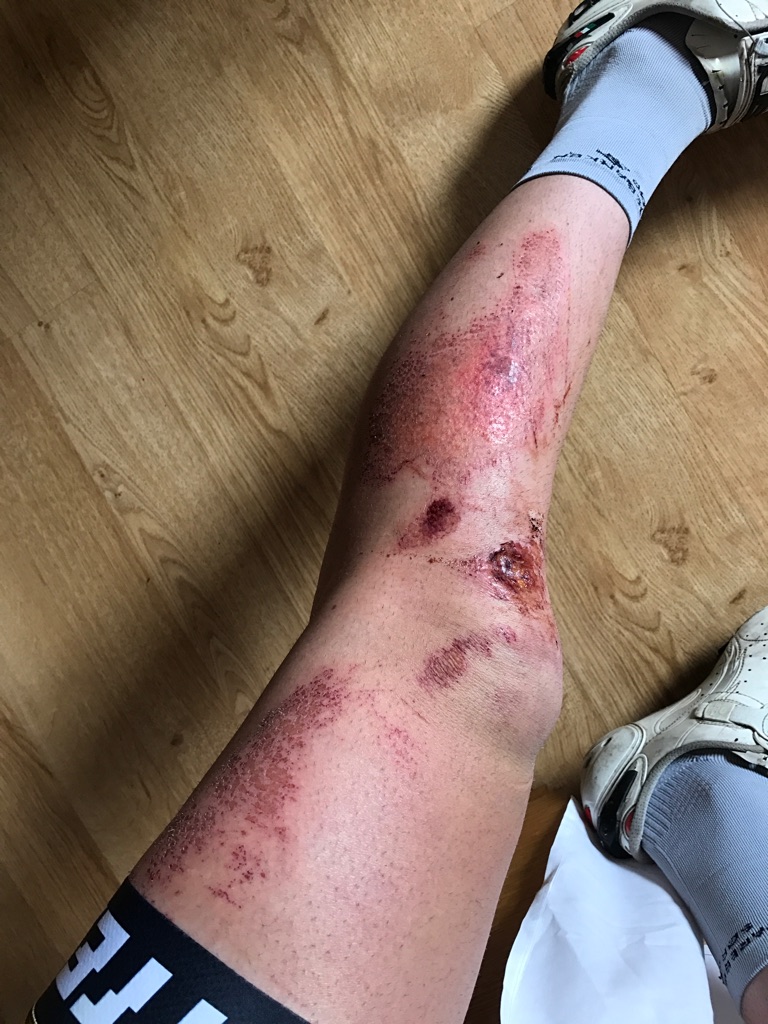 Må du nedpå, og du kun har et tynt lag med lycra utenpå kroppen, ja – da er det nødt til å ende med skrammer.