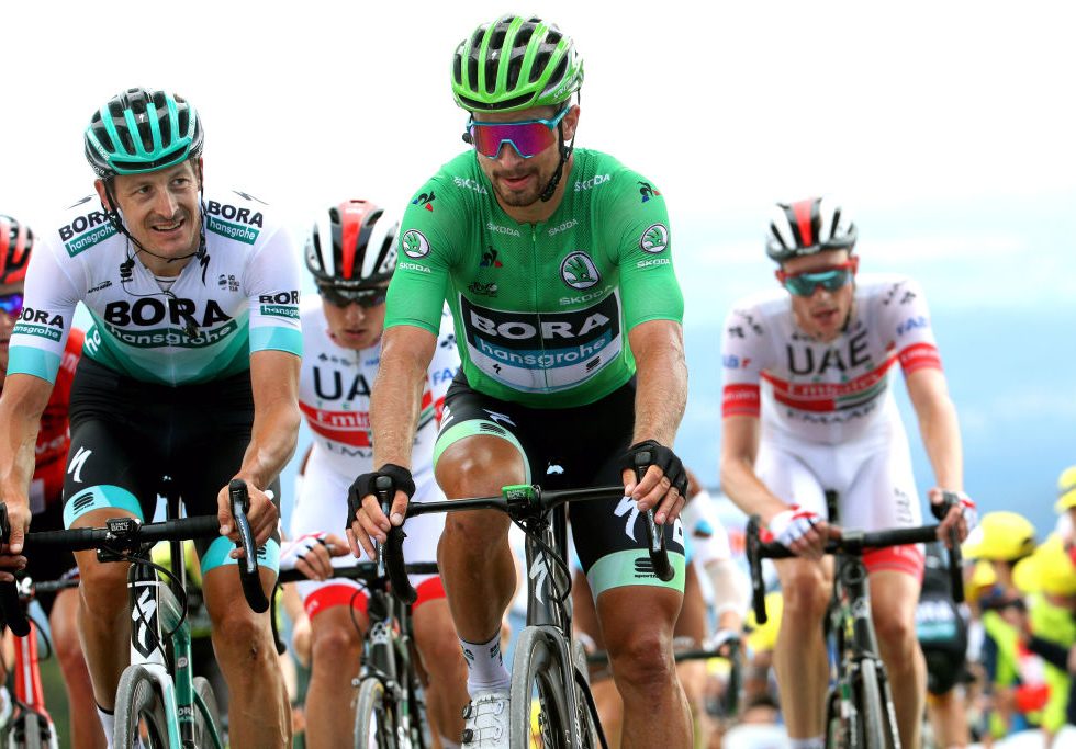 Bora-Hansgrohe fikk blod på tann. Ingen av de nevnte spurterne kom seg tilbake til feltet. Nummer 1, 3 og 4 i kampen om den grønne trøya var borte.