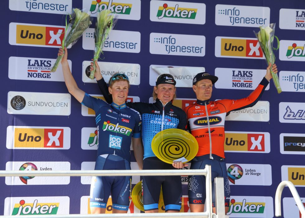 PALLEN: Rasmus Guldhammer vant Ringerike Grand Prix 2017 foran Carl Fredrik Hagen og Troels Vinther. Foto: Jarle Fredagsvik, procycling.no