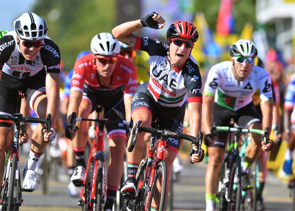 Den som manøvrerte seg best i kaoset var Sacha Modolo (UAE Team Emirates), som kjempet seg inn i fjerdeposisjon i et mylder av ryttere, og timet spurten perfekt. Danny Van Poppel (Team Sky) kom svært raskt på slutten, men klarte akkurat ikke å komme forbi Modolo, som med det tok årets fjerde seier.