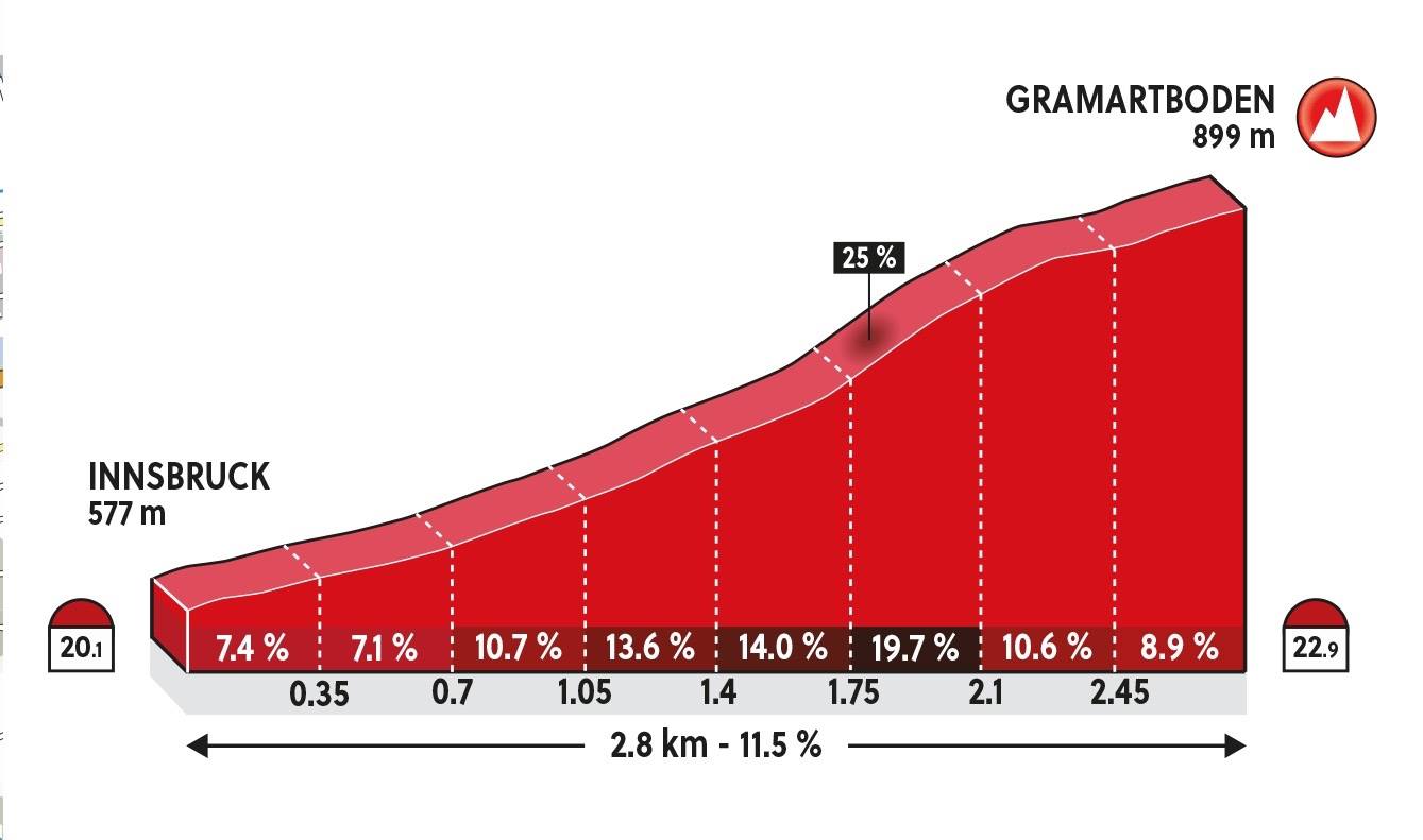 Den avgjørende bakken er 2,8 kilometer lang og stiger 11,5 prosent i snitt. På det verste når stigningsgraden hele 25 prosent, og det er dette som har fått arrangøren til å børste støvet av AC/DC-klassikeren med omtrent samme navn.