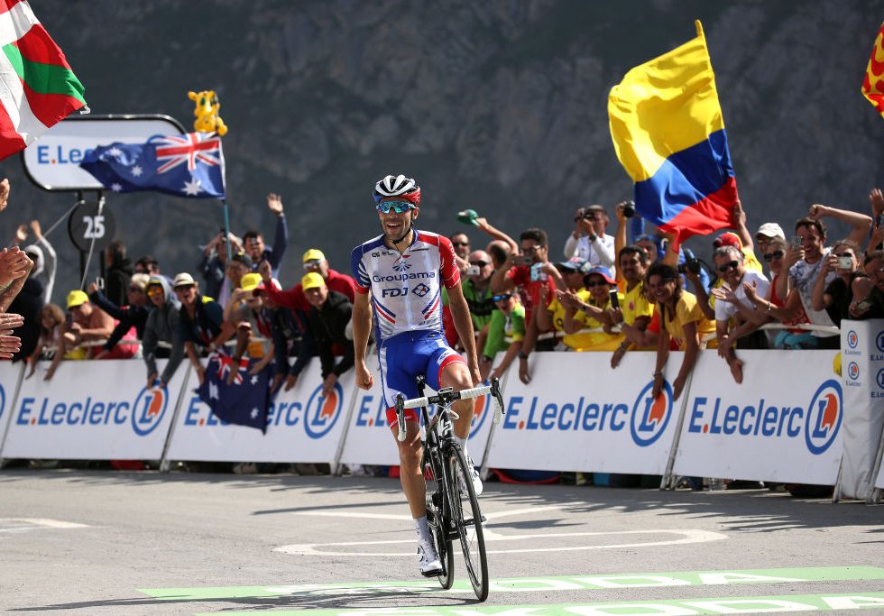 TOURMALET BARÈGES, FRANCE - JULY 20: Arrival / Thibaut Pinot of France and Team Groupama-FDJ / Celebration / during the 106th Tour de France 2019, Stage 14 a 117km stage from Tarbes to Tourmalet Barèges 2115m - Souvenir Jacques Goddet / TDF / #TDF2019 / @LeTour / on July 20, 2019 in Tourmalet Barèges, France. (Photo by Chris Graythen/Getty Images)