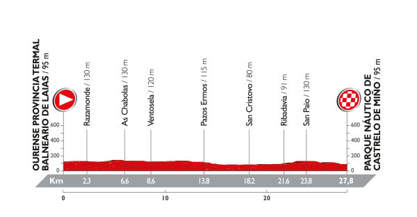 Den 71. utgaven av Vuelta a España innledes på sedvanlig vis med lagtempo, noe det spanske treukersrittet har gjort hvert år siden 2010. Årets lagtempo er dog langt mindre kontroversiell enn fjorårets, som gikk langs strandpromenaden i Marbella, med både tre og sand som underlag. Dog går også årets lagtempo nær det fuktige element. Mens fjorårets gikk side om side med idylliske middelhavsbølger, har man i år tatt turen til Galicia og byen Ourense, hvor rittet går langs elven Miño.