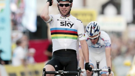 Mark Cavendish spurtslo Peter Sagan etter opptrekk fra Edvald Boasson Hagen.