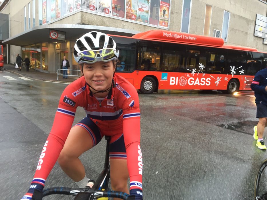 UNG OG GOD: Susanne Andersen er fortsatt junior, men hevder seg allerede veldig godt blant seniorene. Foto: Norges Cykleforbund.