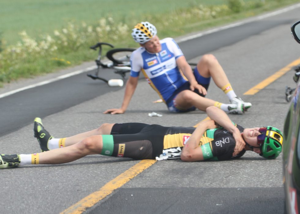 – Det skjedde på tredjerunden. Jeg tror ikke det var noen andre enn meg som gikk ned det. Det rare er at det gikk en enda større velt på samme sted på runden etter, sier Strindin til procycling.no.