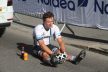 TOK KRAGEBEINET: Joachim Strindin forsøkte å avansere opp i feltet på tredjerunden, men det endte opp med bråbrems og et luftig svev over styret. FOTO: Jarle Fredagsvik, procycling.no