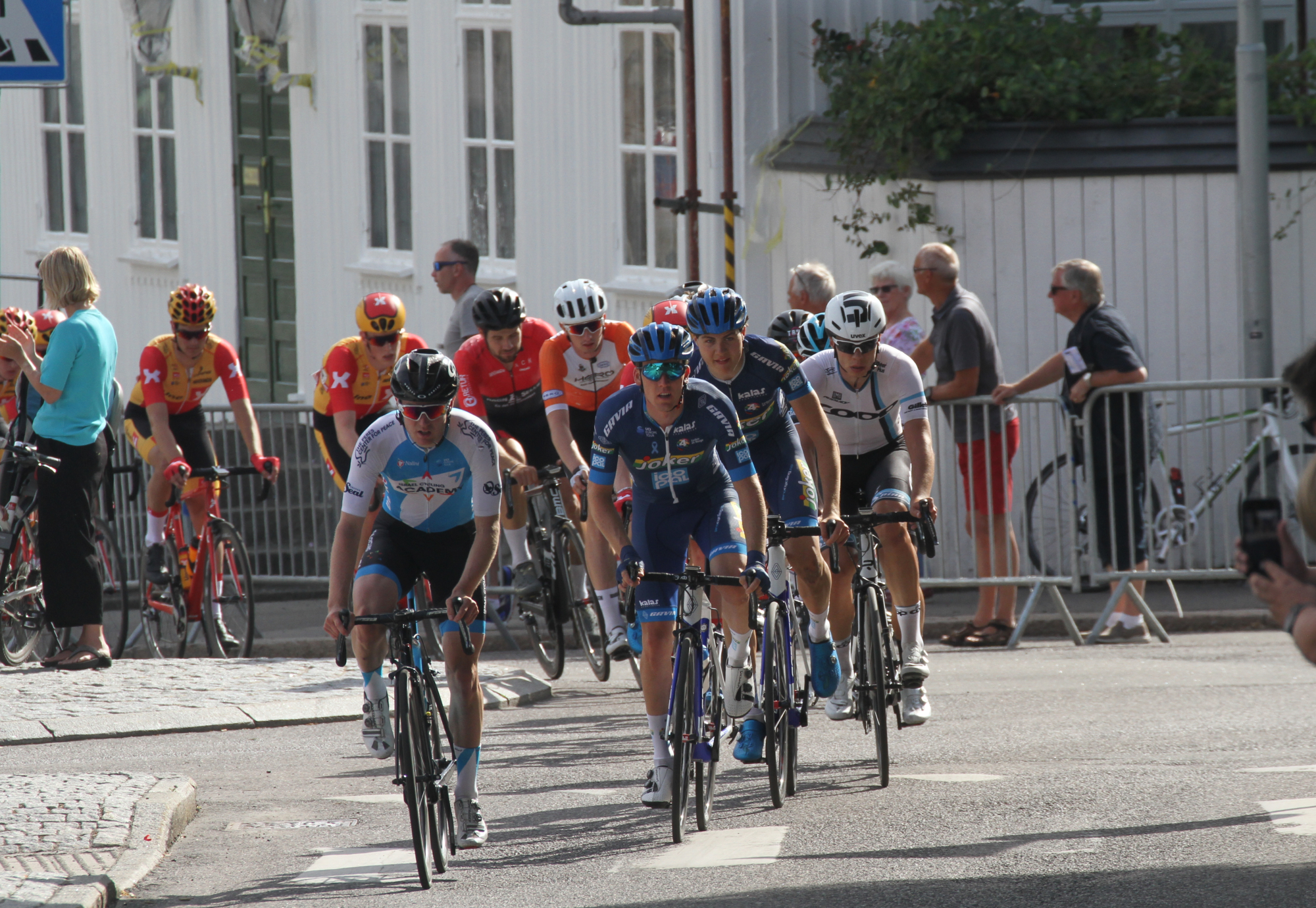 RESIGNASJON: Lagkompis August Jensen fikk en tung reise med mye tekninsk krøll. Her leder han feltet ut på de siste to rundene. FOTO: Jarle Fredagsvik, procycling.no