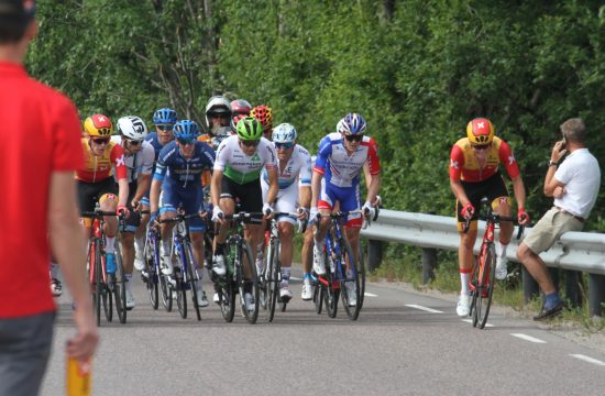 HER TAR DET FYR: Anders Skaarseth angriper ute til høyre. Dette er helt oppe ved E18-brua, og den siste delen av Hovtvedt-veien. FOTO: Jarle Fredagsvik, procycling.no