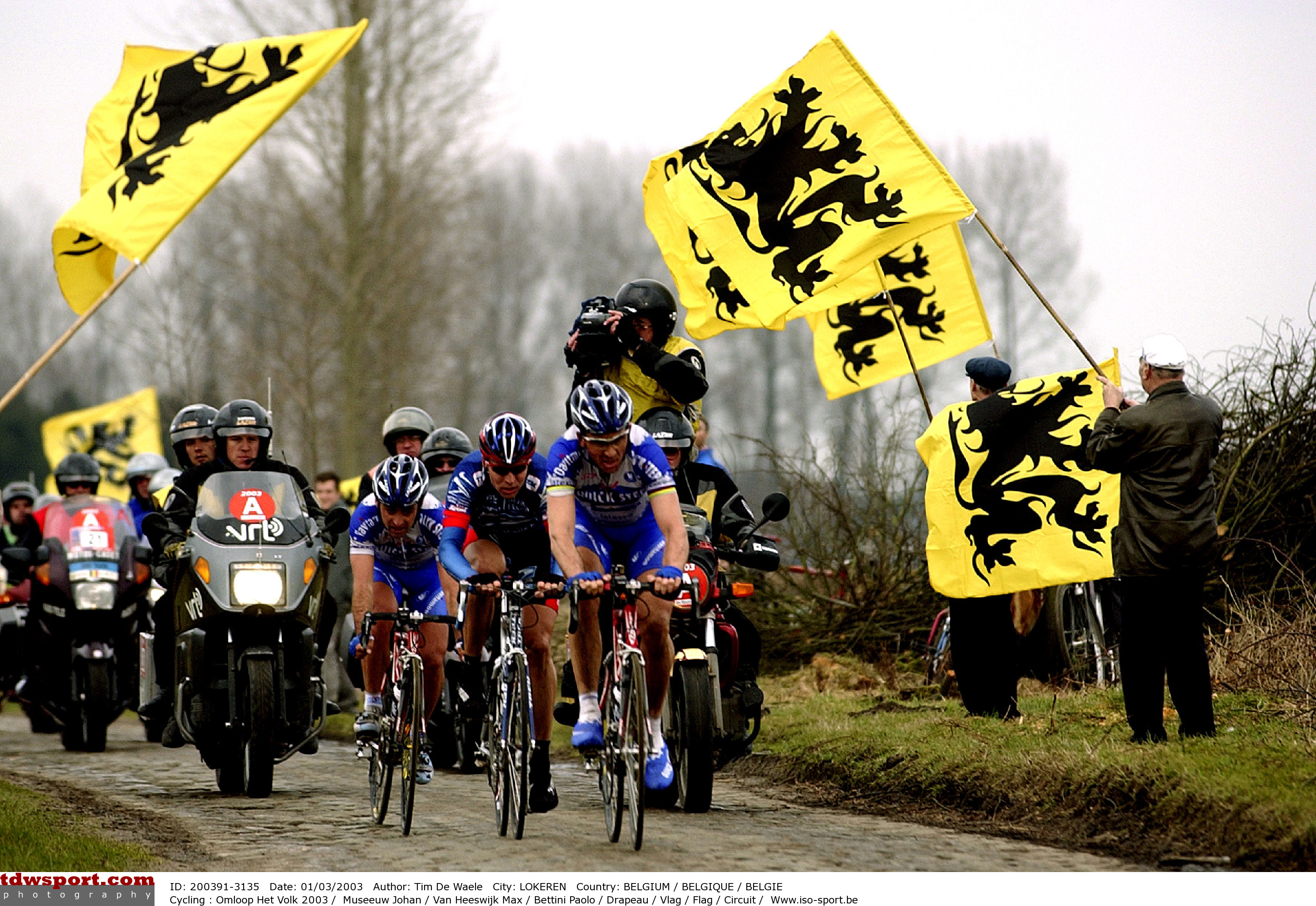 2003: Mot sin andre og siste Het Volk-seier, drar Johan Museeuw på Max Heeswijk og Paolo Bettini.