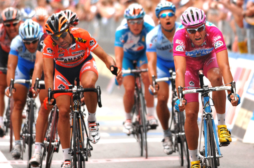 FIKK ETAPPESEIRER I POSTEN: Denne duellen tapte Max Richeze mot Alessandro Petacchi i 2008, men italieneren mistet siden seieren etter å ha testet positivt på Salbutamol. Richeze har også sine svin på skogen: Året etter ble han kastet ut av samme ritt etter å ha testet positivt på et steroid. (Photo by Tim De Waele/Getty Images)