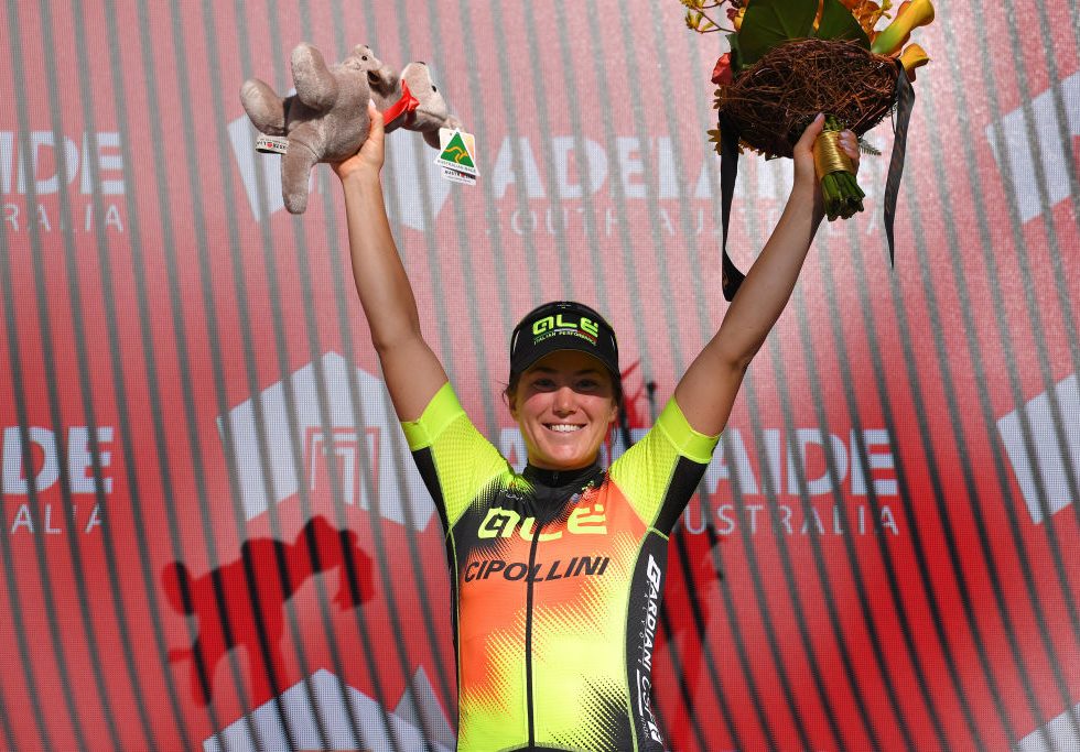 ADELAIDE, AUSTRALIA - JANUARY 13: Podium / Chloe Hosking of Australia and Team Ale Cipollini / Celebration / during the 5th Santos Women's Tour Down Under 2019 - Stage 4 a 42,5km stage from Adelaide to Adelaide on January 13, 2019 in Adelaide, Australia. (Photo by Tim de Waele/Getty Images)
