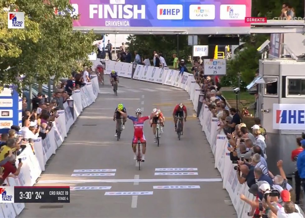 (procycling.no): Med en bakke på én km à åtte prosent som startet drøyt syv kilometer fra mål, ble det en spennende avslutning på den fjerde etappen i CRO Race.