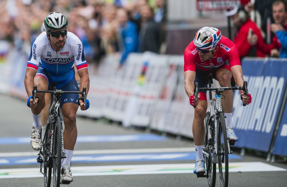 NÆRE: Men gullet gikk til Peter Sagan. For Kristoff manglet det en hjulstørrelse. FOTO: AFP PHOTO / Jonathan NACKSTRAND