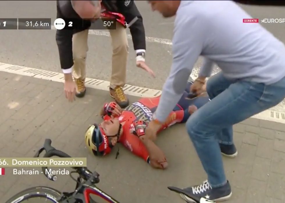 Pozzovivo ble fraktet rett til det lokale sykehuset i Huy i ambulanse. Det ble det ikke konstatert noen brudd. Han pådro seg både kuttskader i ansiktet og fikk påvist hjernerystelse etter fallet.