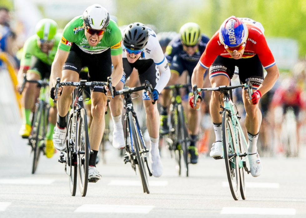 VANT I FJOR: Dylan Groenewegen spurtslo Edvald Boasson Hagen på den fjerde etappen av Tour of Norway 2017 i Sarpsborg. FOTO: Vegard Wivestad Grøtt / NTB scanpix