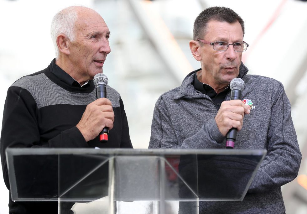 GIKK BORT: Paul Sherwen (til høyre), her avbildet med kommentatorkollega Phil Liggett, er død 62 år gammel. Chris Graythen/Getty Images for AEG