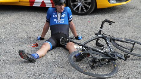 Coop ØsterHus-rytteren med stygt kutt i leggen under Tour des Fjords.