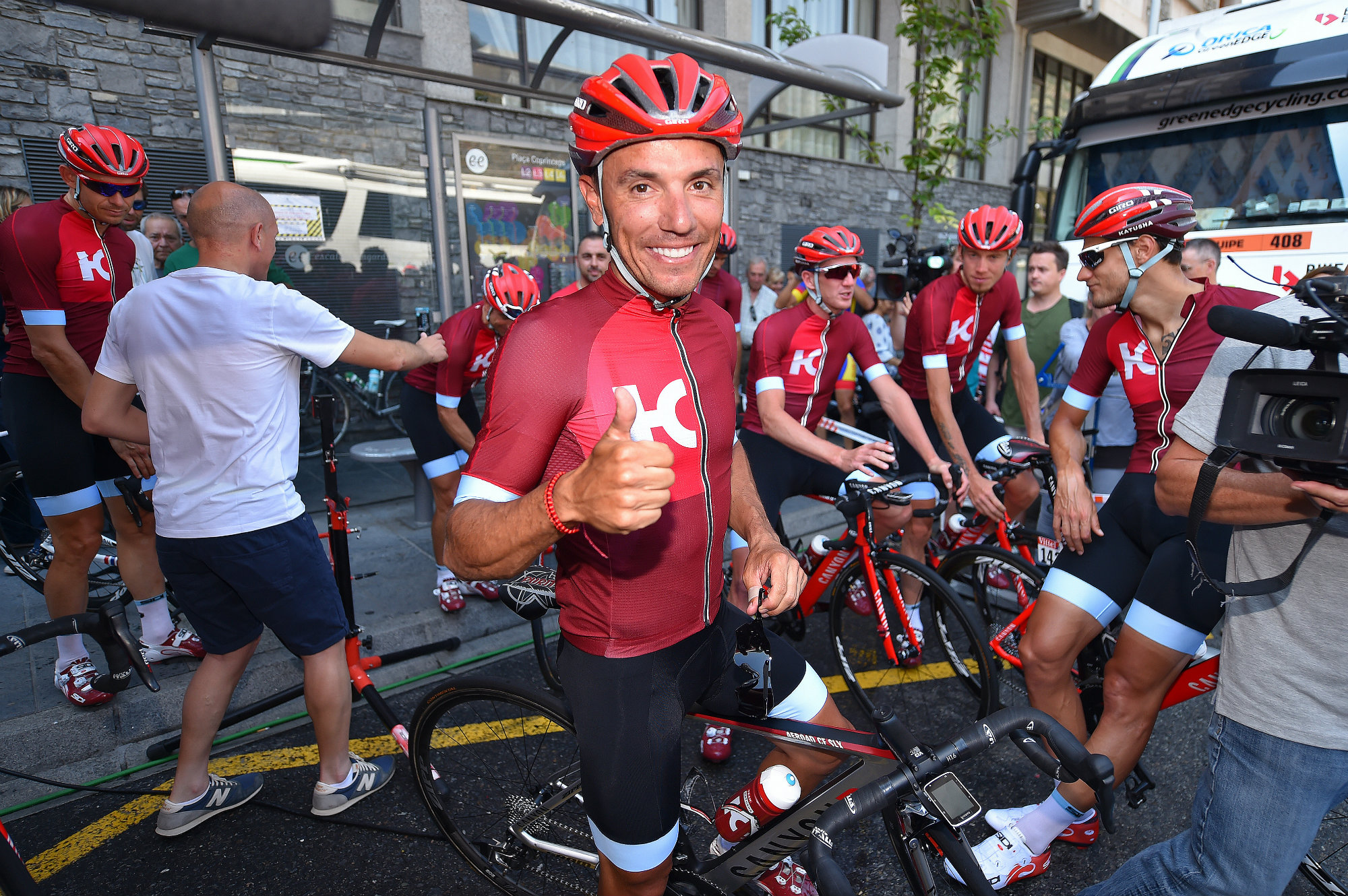 SPANSK TOMMEL OPP: Joaquim Rodrìguez er ferdig med sin pressekonferanse og klar for sykkeltur. FOTO: Tim De Waele/tdwsport.com