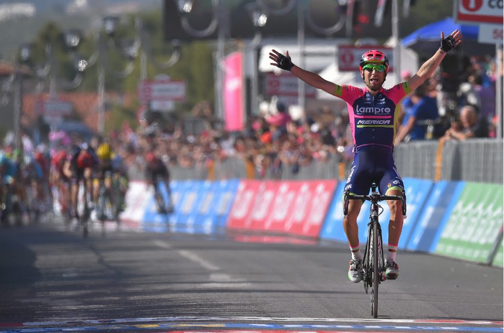 I utforkjøringen på Praia a Mare holdt Lampre-Merida-rytteren unna og forfølgerne klarte ikke å hente han på målstrekket. Dermed kunne han juble over karrierens femte etappeseier i Giro d’Italia.