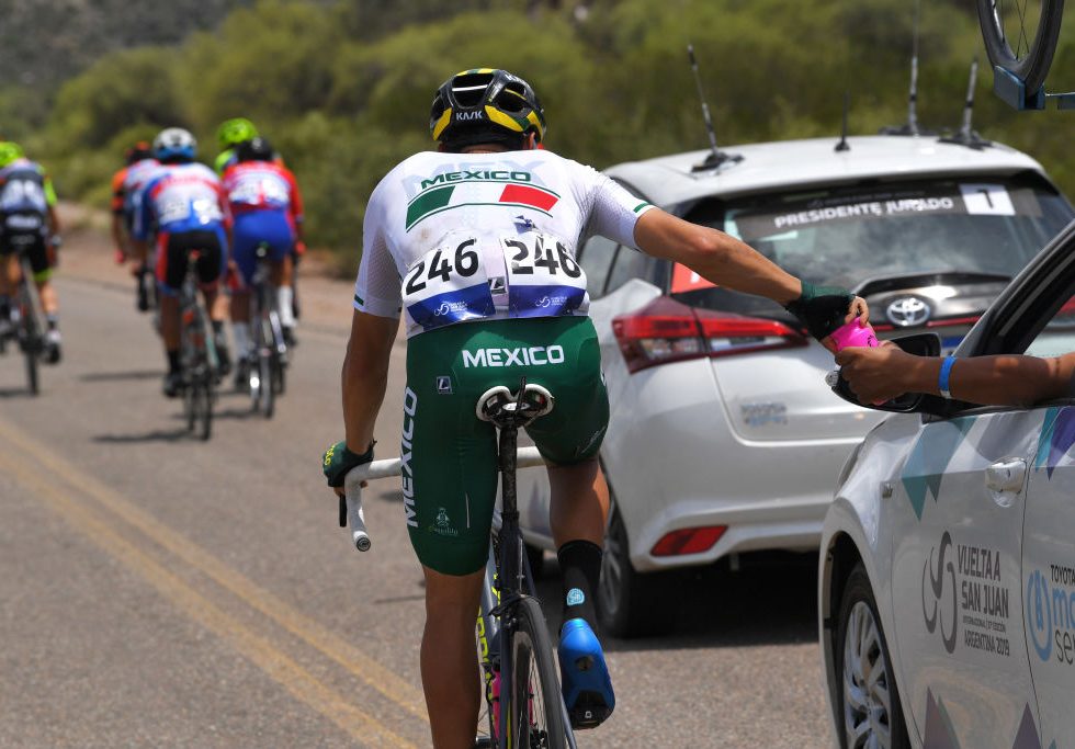 Hendelsen sendte flere ryttere i bakken. Blant dem den meksikanske mesteren i tempo, Luis Villalobos (Aevolo Development Team).