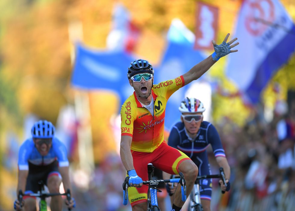 Spanjolen har tidligere tatt seks VM-medaljer, men dette var veteranens første VM-gull. I målområdet var 38-åringen i full ekstase og viste tydelig hvor mye gullet betød for ham. Etter hvert kom også tårene fram for Valverde, som dermed kan legge til en seier på den imponerende VM-rekken hans. Fra VM har han for øvrig resultatrekka 2, 6, 2, 3, 57, 37, 9, 3, 3, 3, 5.