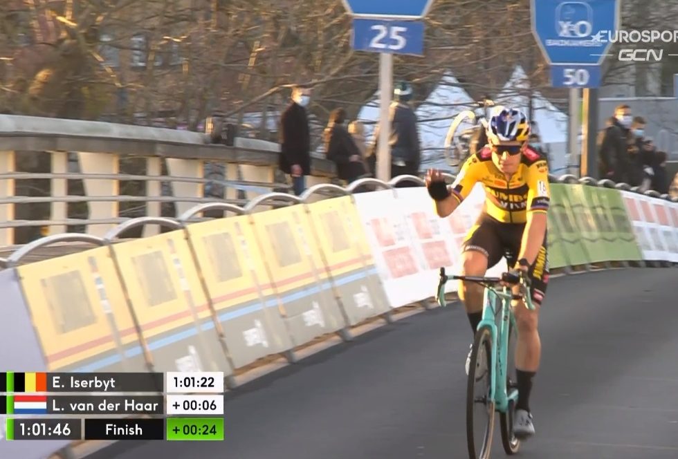 Van Aert virket å slite med sykkelen på siste runde og klarte ikke følge Lars van der Haar i kampen om andreplassen.